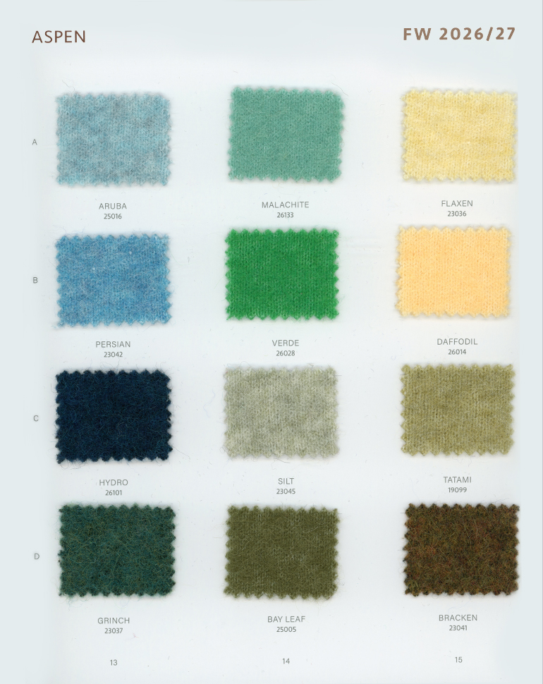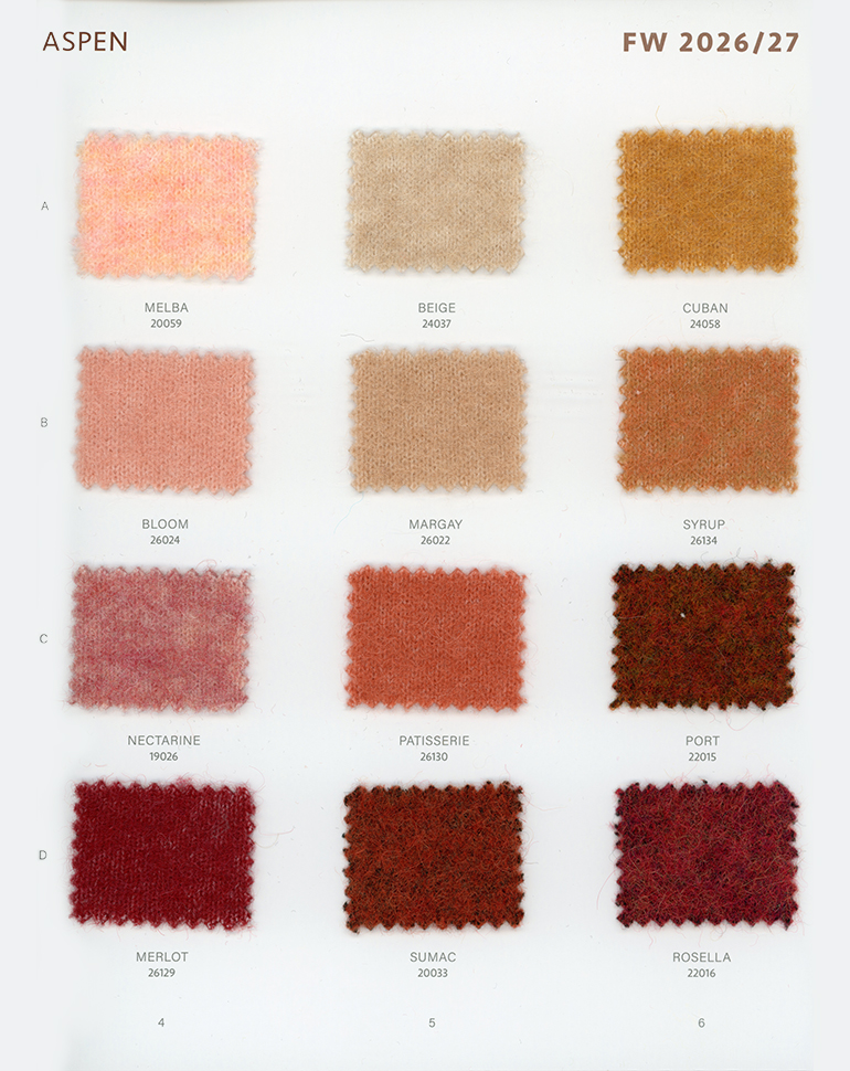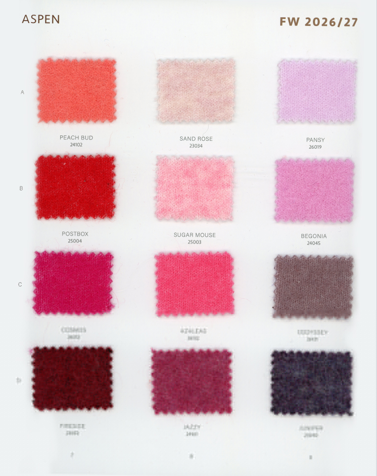 紗線風格:手感豐厚、毛感足、彈力好,有仿毛呢面料的效果 。 適合產(chǎn)品:秋冬毛衫、外套,仿皮披肩以及制作氈縮效果面料。
