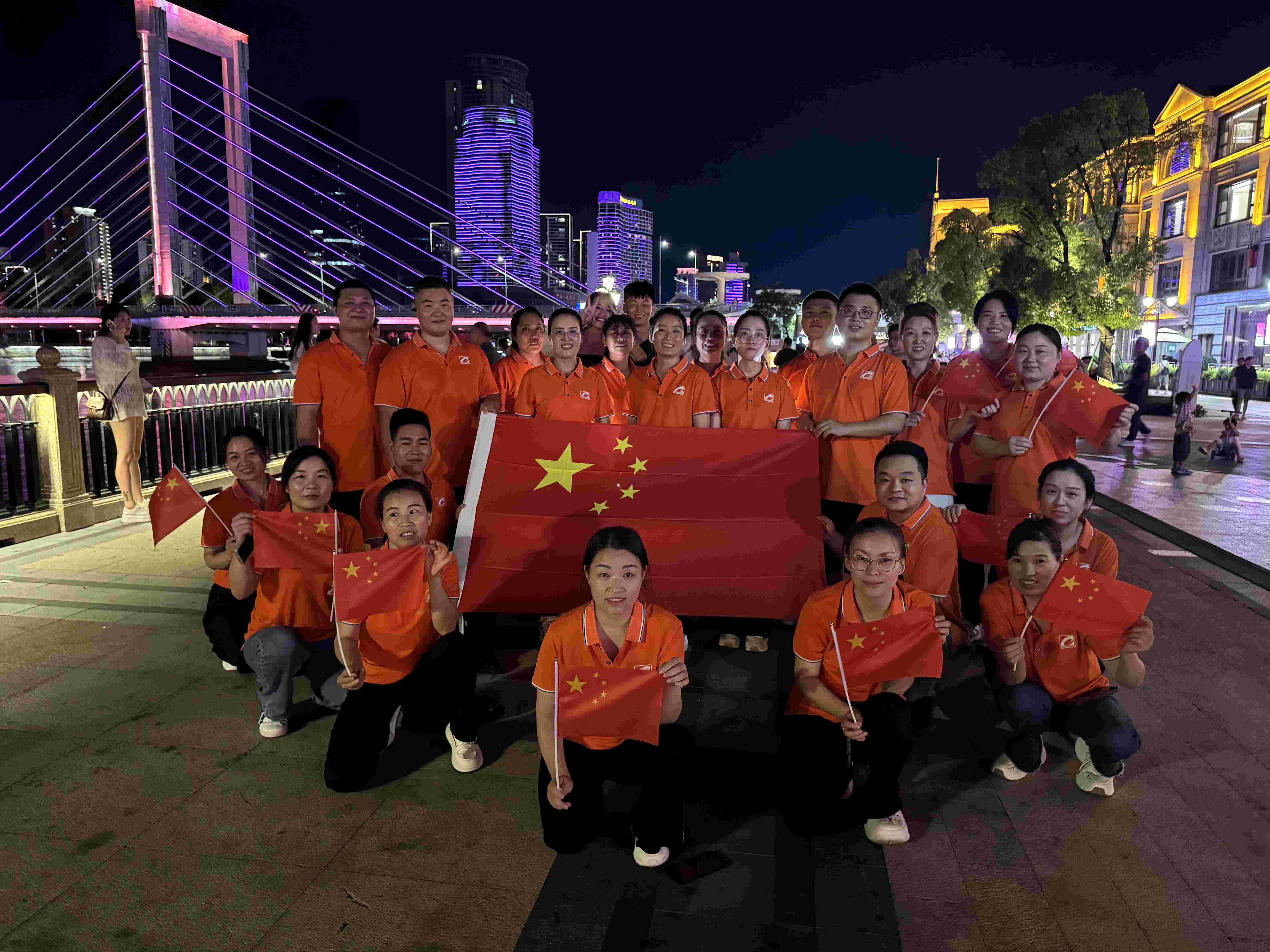 夜幕下的寧波老外灘,康賽妮人身著橙衫,手持國旗,環(huán)繞合影。同衫、同夢、同心,以赤誠致敬祖國。璀璨燈火中,企業(yè)擔(dān)當(dāng)與愛國情懷相融,定格熱血奮進(jìn)的動(dòng)人圖景。