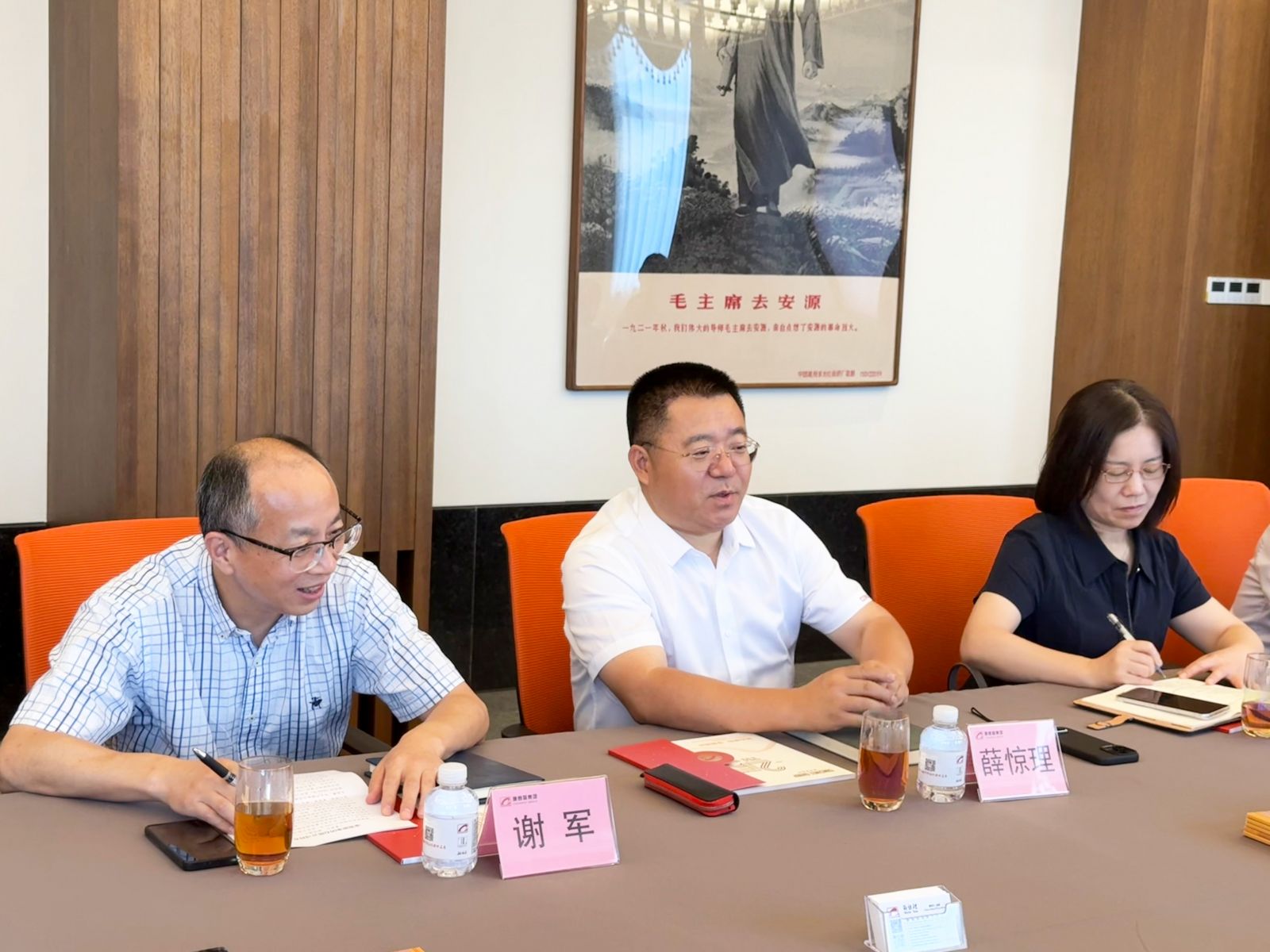 參觀結(jié)束后,雙方在會議室座談交流。薛董向李關(guān)定副市長一行匯報了中國奢侈品行業(yè)發(fā)展現(xiàn)狀、技術(shù)創(chuàng)新路徑及品牌國際化策略展開,強調(diào)品質(zhì)提升與智能制造對產(chǎn)業(yè)升級的關(guān)鍵作用。他提到康賽妮堅持創(chuàng)新驅(qū)動,加大高端研發(fā)投入,探索國際化路徑,同時面臨國際貿(mào)易壁壘等挑戰(zhàn),希望政府能給予更多政策支持與引導(dǎo)。