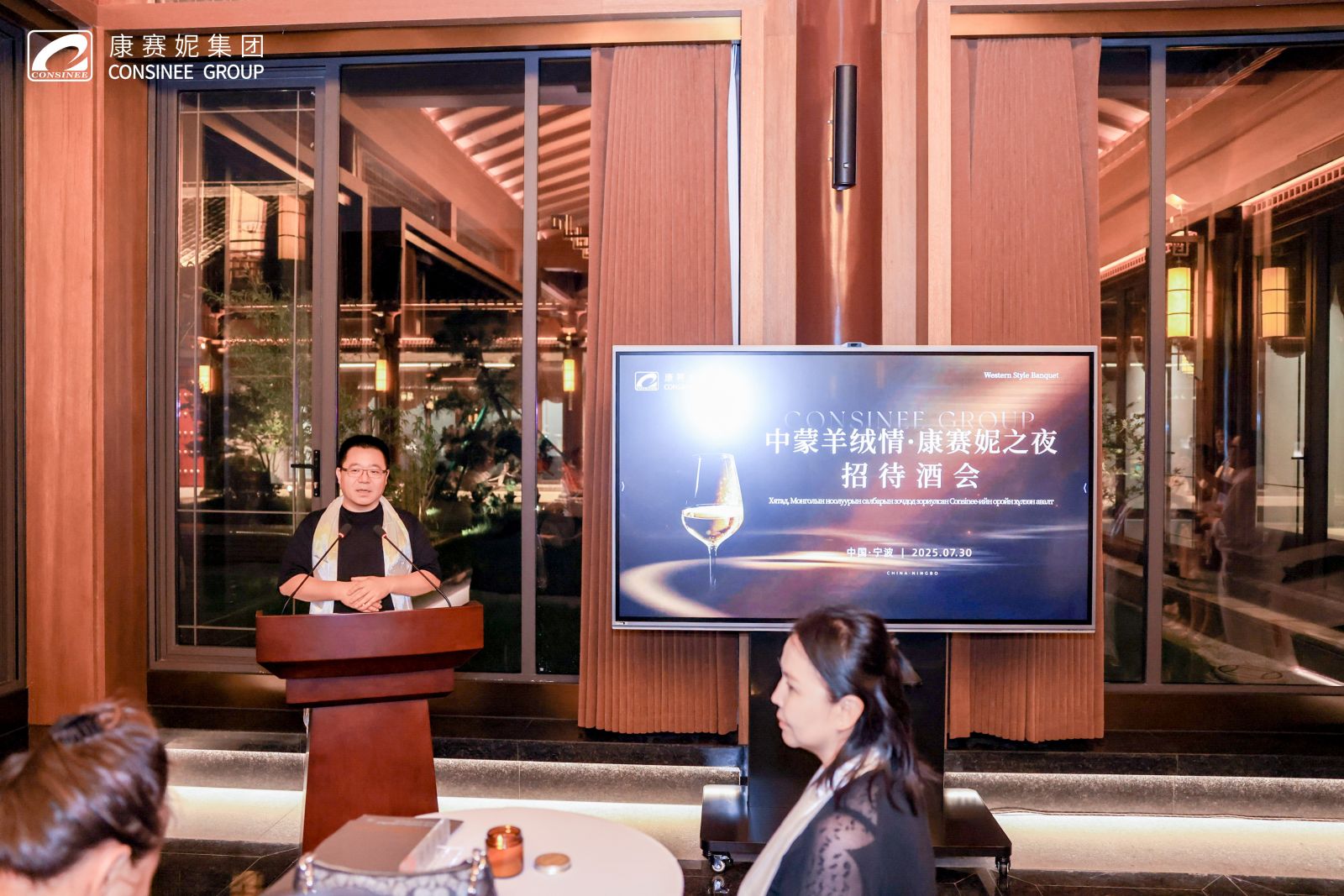 夜晚,“中蒙羊絨情·康賽妮之夜”招待酒會(huì)在康賽妮集團(tuán)六樓貴賓廳盛大啟幕,嘉賓齊聚一堂,以文化為橋,以情誼為紐帶,共繪合作新藍(lán)圖。